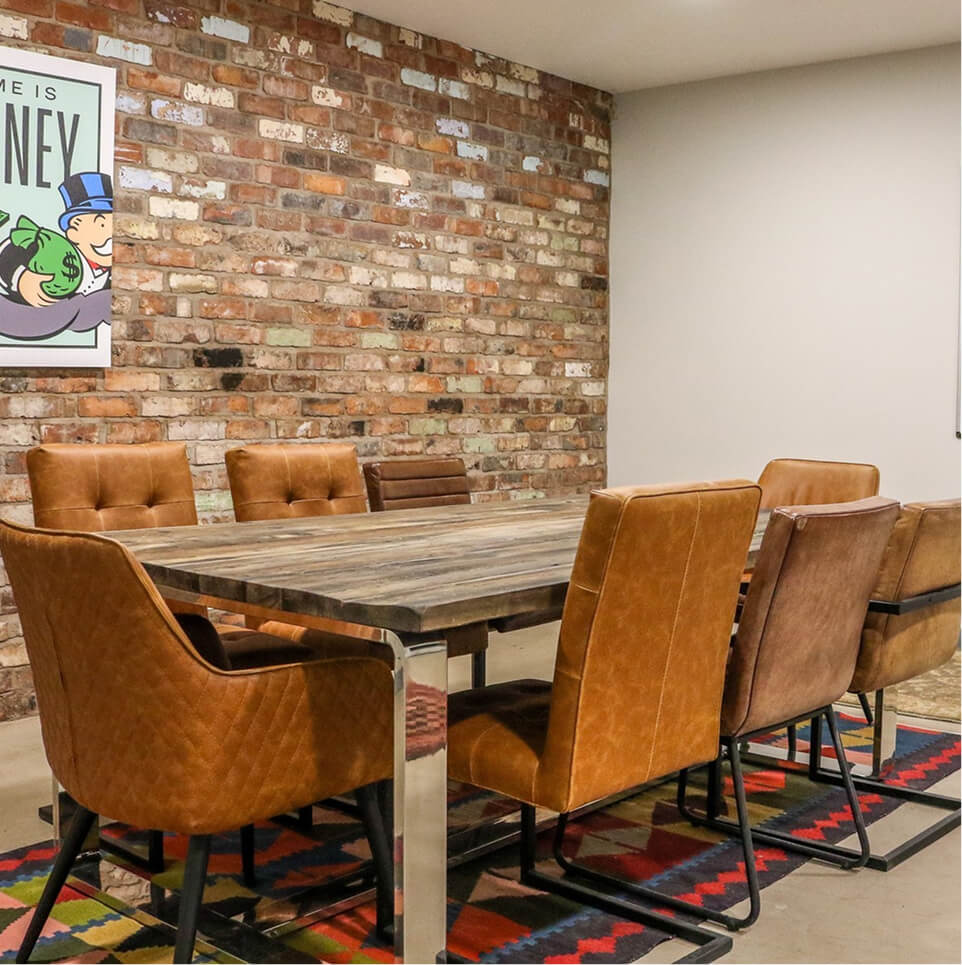 A modern co-working space demands versatility and high-end finishes. We constructed bright, open-plan office environments featuring designated walkways and sleek, contemporary glass balustrades. For the executive meeting areas, our masonry specialists created beautiful brickwork walls to create stunning exposed feature , providing a sophisticated backdrop for the rustic boardroom furnishings.