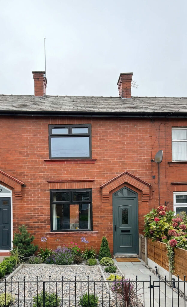 Valleyton Properties & Construction recently upgraded the windows and doors in Duckinfield, installing sleek black windows and a stylish grey UPVC door. These improvements not only enhance the home’s modern look but also help retain warmth and potentially lower energy bills. See the transformation for yourself below.